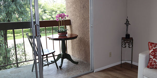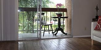 Sliding glass doors provide easy indoor outdoor resident access.