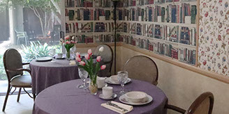 Comfort and convenience in our library-inspired dining area. This is one of three uniquely-themed eating areas.