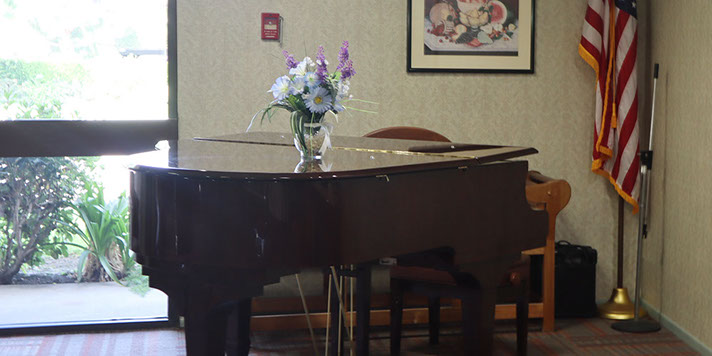 Our lovely baby grand piano gets put to good use here in our community.